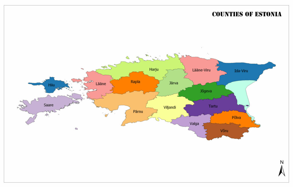 In Estonia, there are 15 counties. Below, you can see the map of the counties of Estonia.
