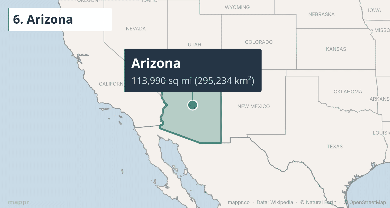 | 6 | Arizona | 113,990 | 295,234 | Phoenix | Mountain |