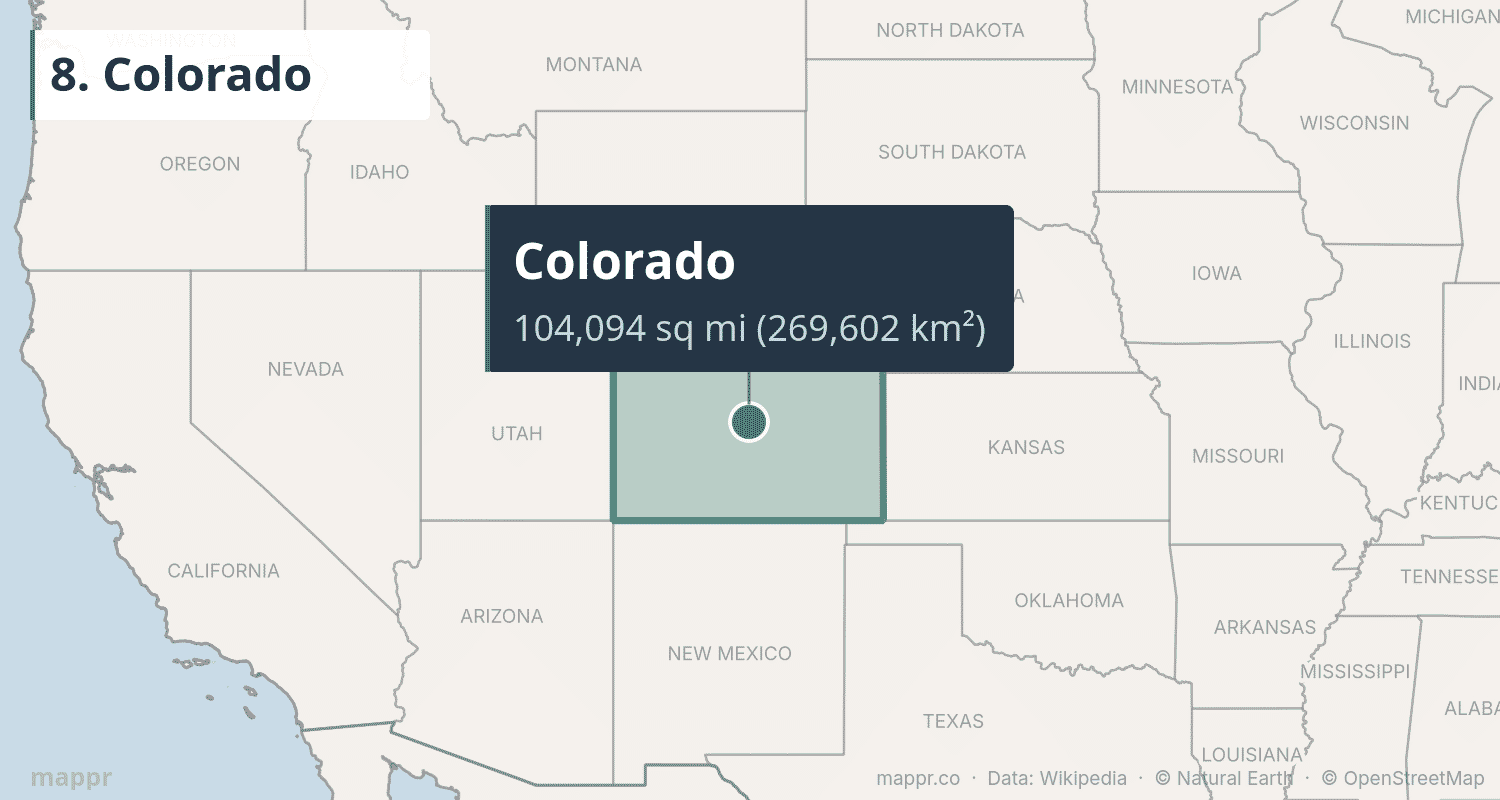 | 8 | Colorado | 104,094 | 269,601 | Denver | Mountain |