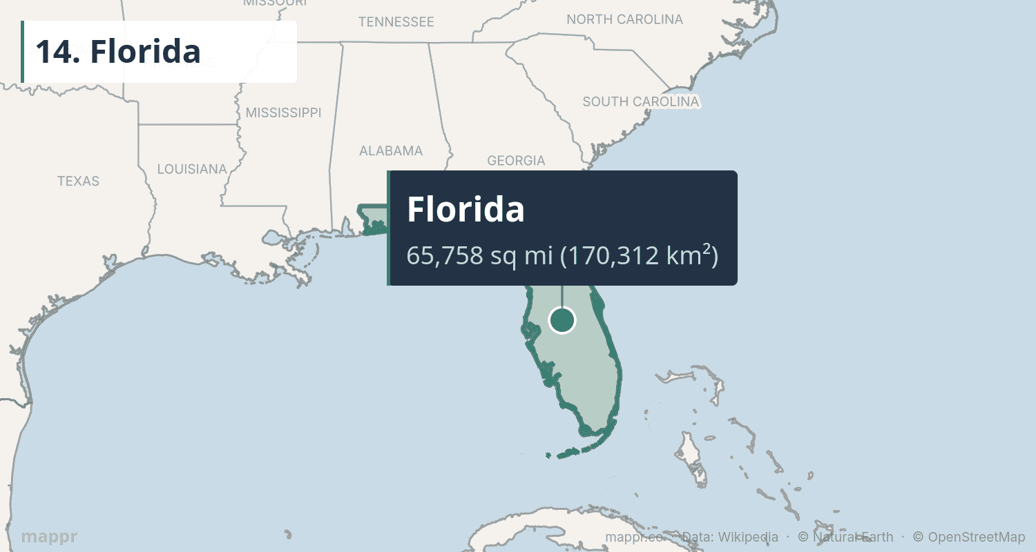 | 14 | Florida | 65,758 | 170,312 | Tallahassee | South Atlantic |