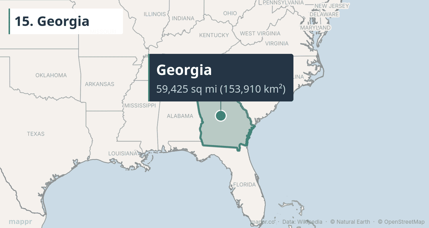 | 15 | Georgia | 59,425 | 153,910 | Atlanta | South Atlantic |