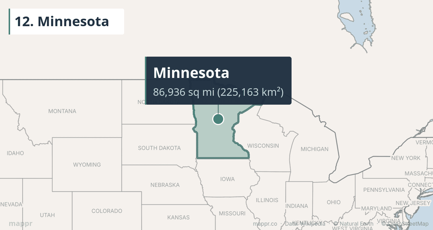 | 12 | Minnesota | 86,936 | 225,163 | Saint Paul | Upper Midwest |