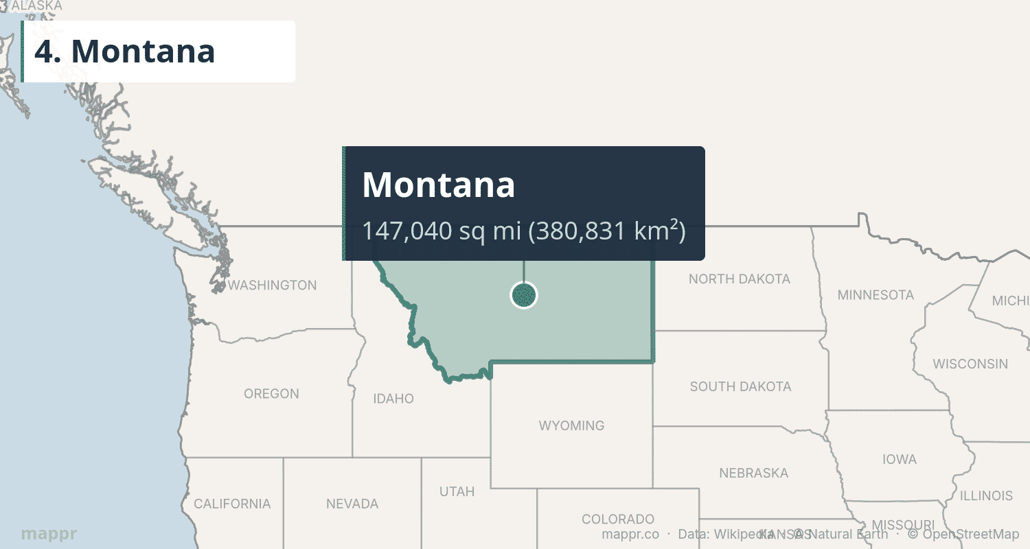 | 4 | Montana | 147,040 | 380,831 | Helena | Mountain |