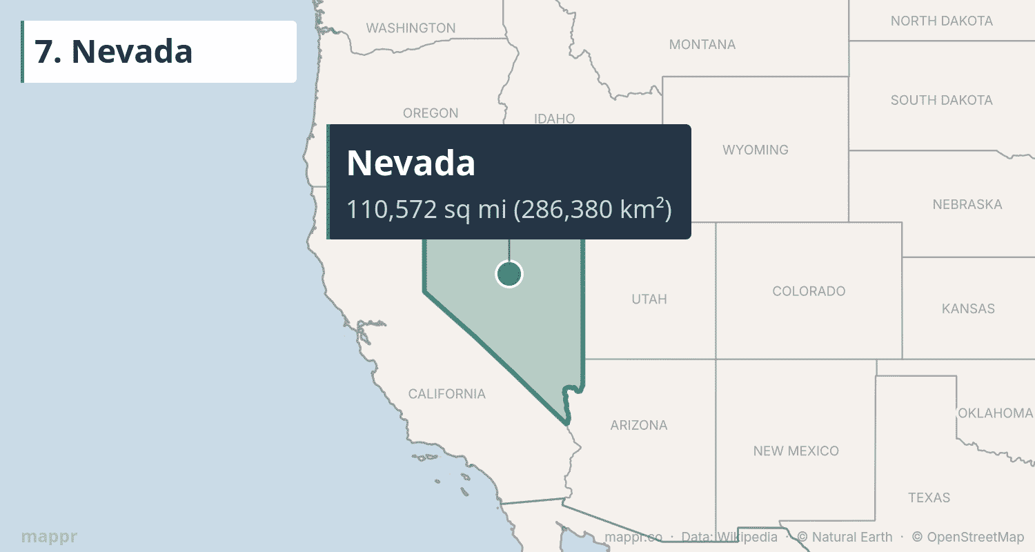 | 7 | Nevada | 110,572 | 286,380 | Carson City | Mountain |