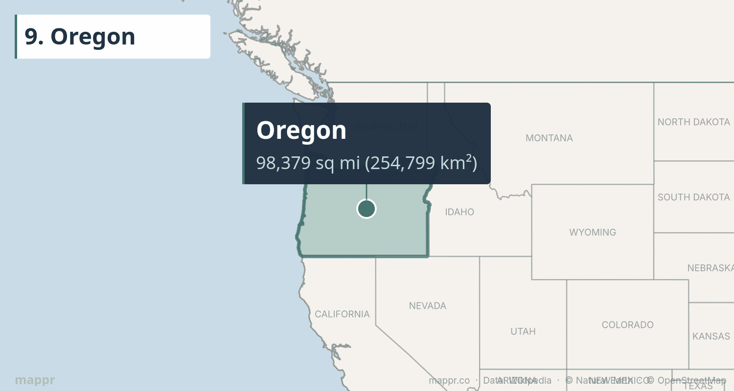 | 9 | Oregon | 98,379 | 254,799 | Salem | Pacific |