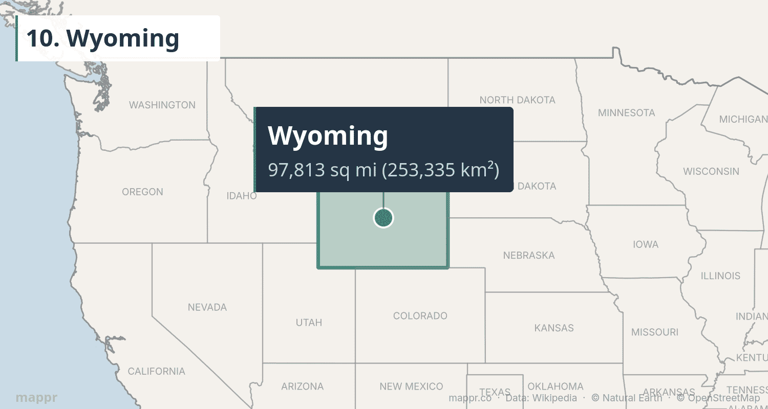 | 10 | Wyoming | 97,813 | 253,335 | Cheyenne | Mountain |