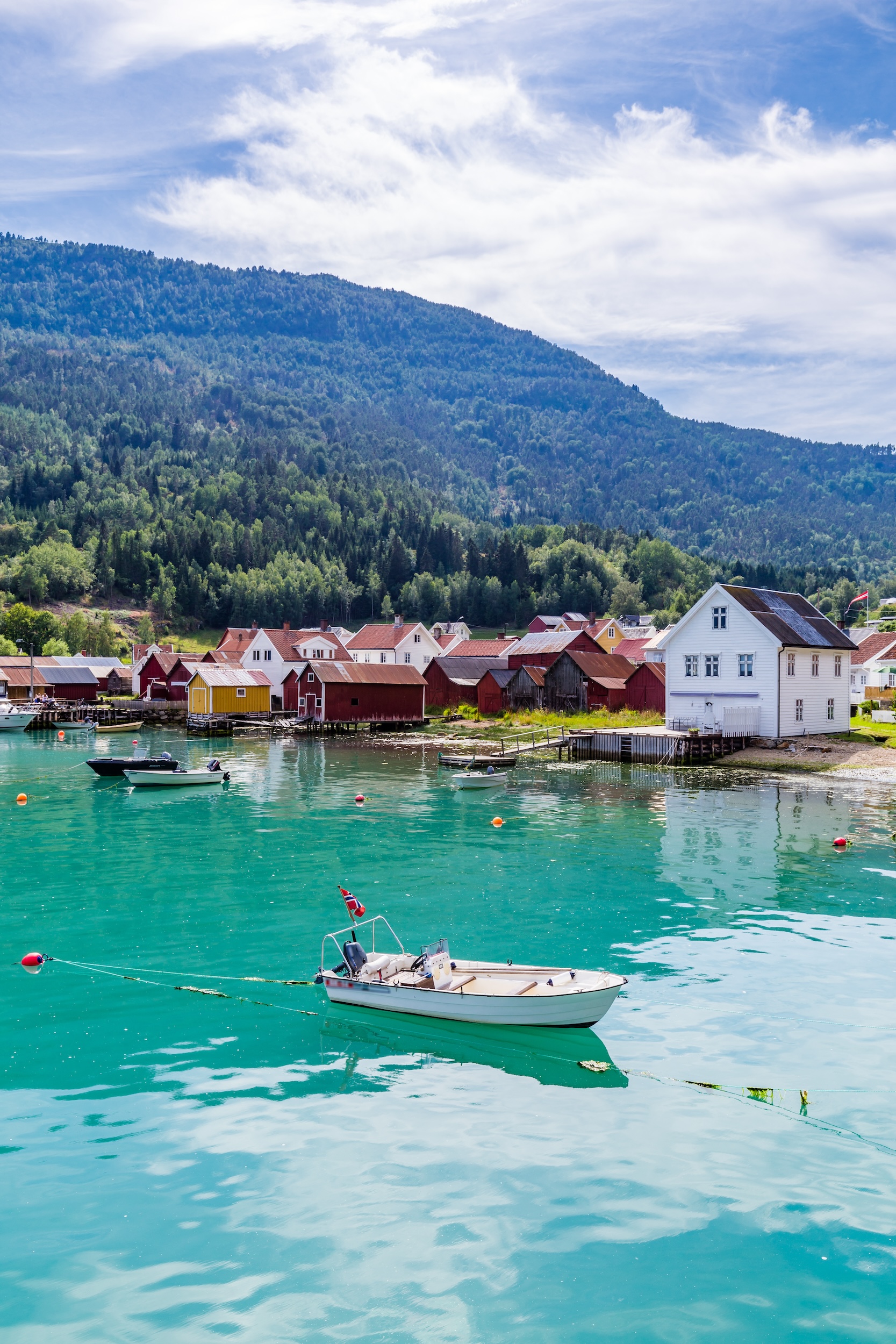 The village’s temperate summer climate ensures pleasant days perfect for leisurely strolls through its charming streets or serene boat rides on the fjord.