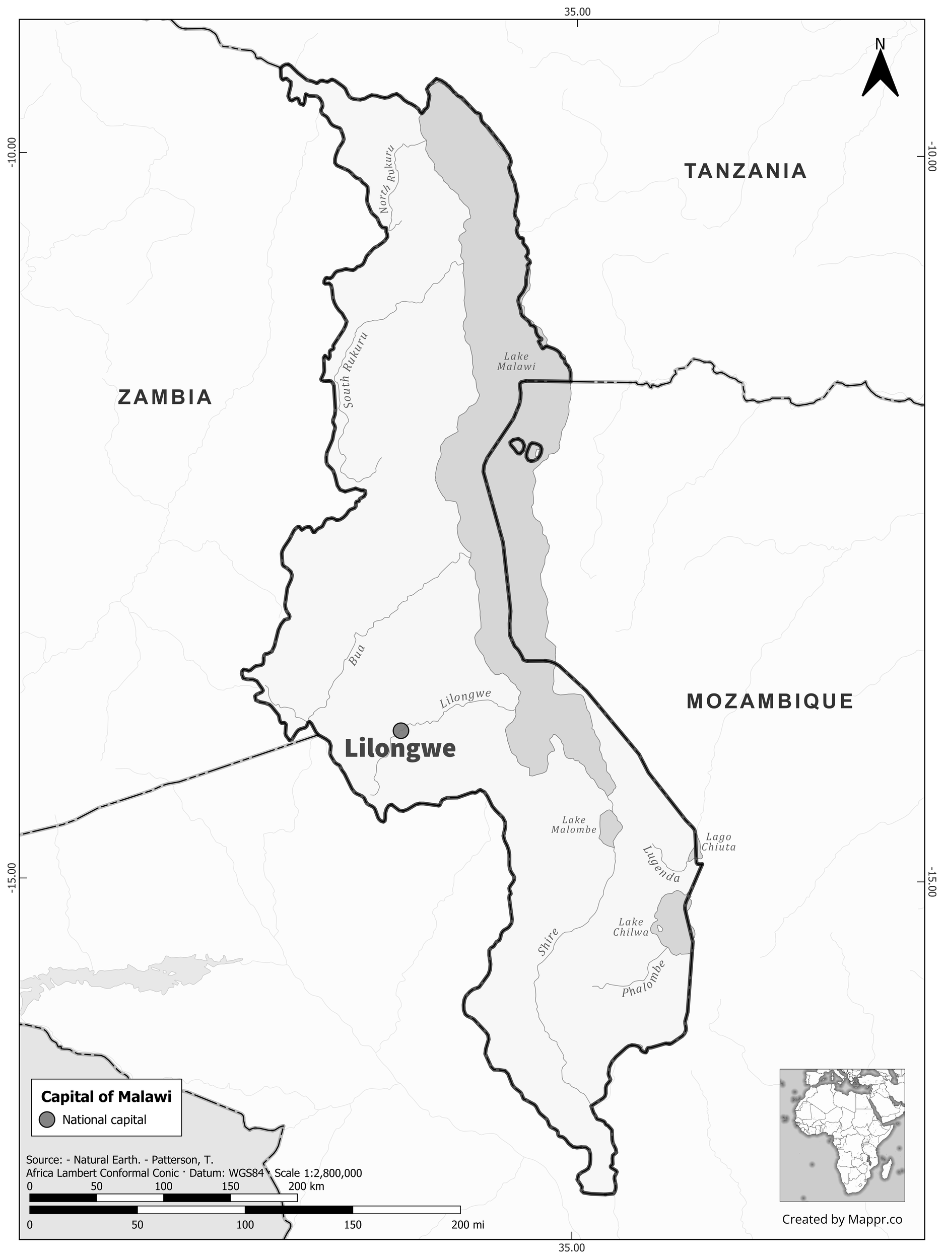 Map Highlighting Lilongwe, the Capital of Malawi and Geographical